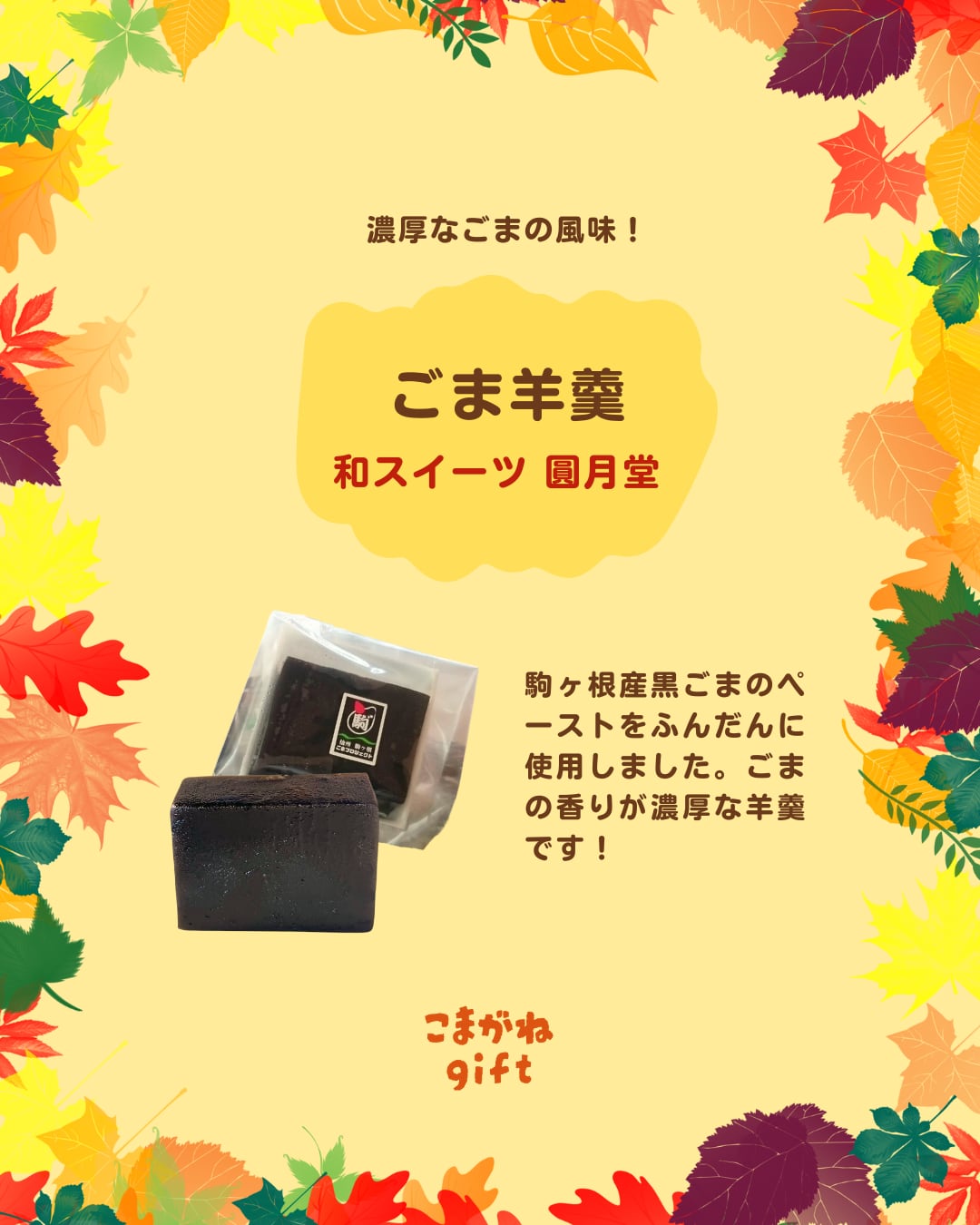 駒ヶ根産黒ごまのペーストをふんだんに使用しました。ごまの香りが濃厚な羊羹です。ごま羊羹の甘さがコーヒーの苦みとマッチしています☕